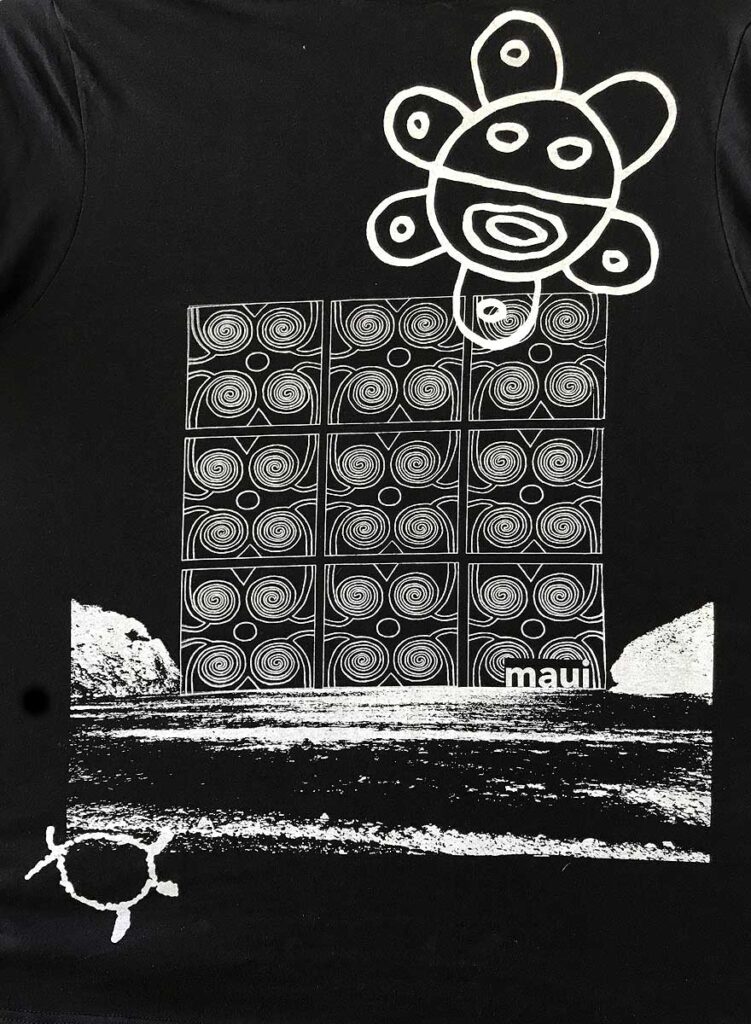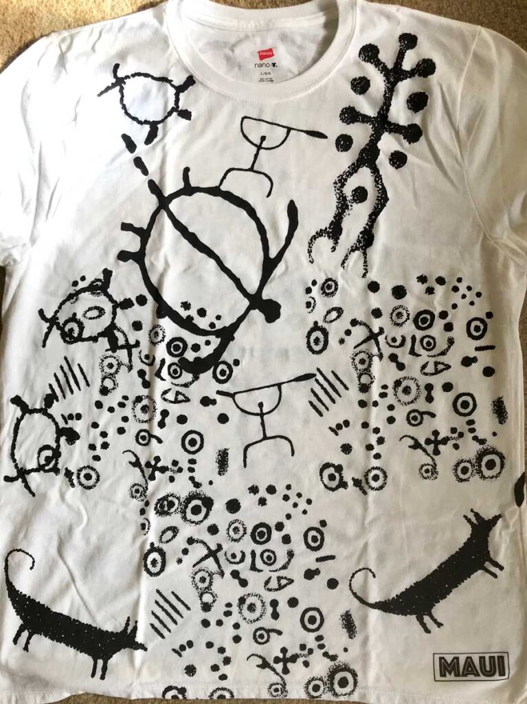T- Shirt categories: 1. All Over (mixed motifs) // 2.Floral // 3. Petroglyph // 4. Central panel (mixed motifs)